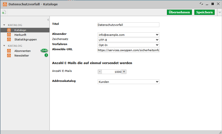 Nach dem Speichern wird automatisch ein Newsletterkatalog angelegt.