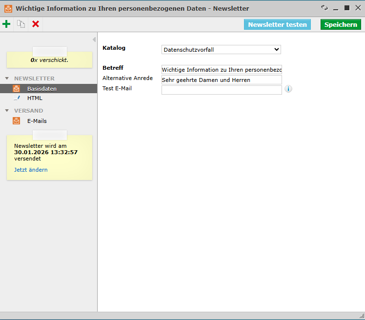 Bitte stellen Sie sicher, dass Inhalt und Versand den für Sie geltenden datenschutzrechtlichen Anforderungen entsprechen.